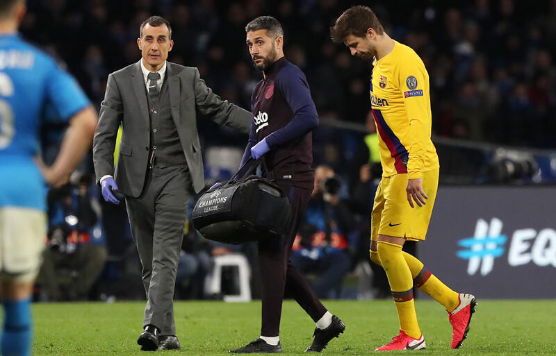ピケは25日に行われたチャンピオンズリーグ決勝トーナメント1回戦1stレグのナポリ戦に先発。後半追加タイム1分に相手選手と空中戦を競って着地した際に左足首を捻って交代を強いられていた。