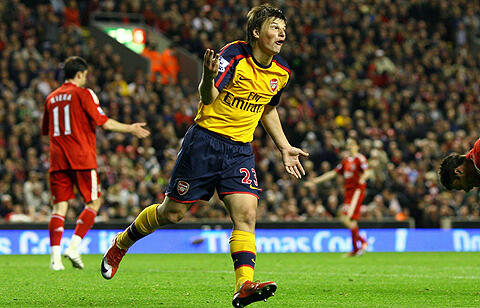 アーセナル加入から2カ月が過ぎた4月21日にアンフィールドで行われたプレミアリーグのリバプール戦に先発出場したアルシャビン氏は、36分に先制点を奪取。
