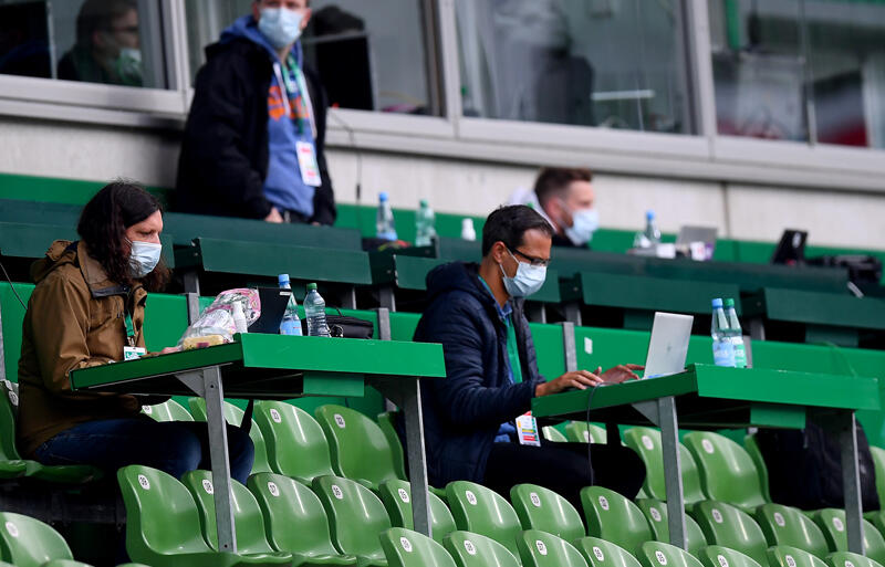 ドイツサッカーリーグ機構(DFL)は、ブンデスリーガ再開にあたり、膨大な安全プロトコルを策定していた。取材についても多くの規定があり、メディアの数は1試合につき総計10人に絞られた。さらに、選ばれた記者は試合前にPCR検査を受けることが義務付けられている。