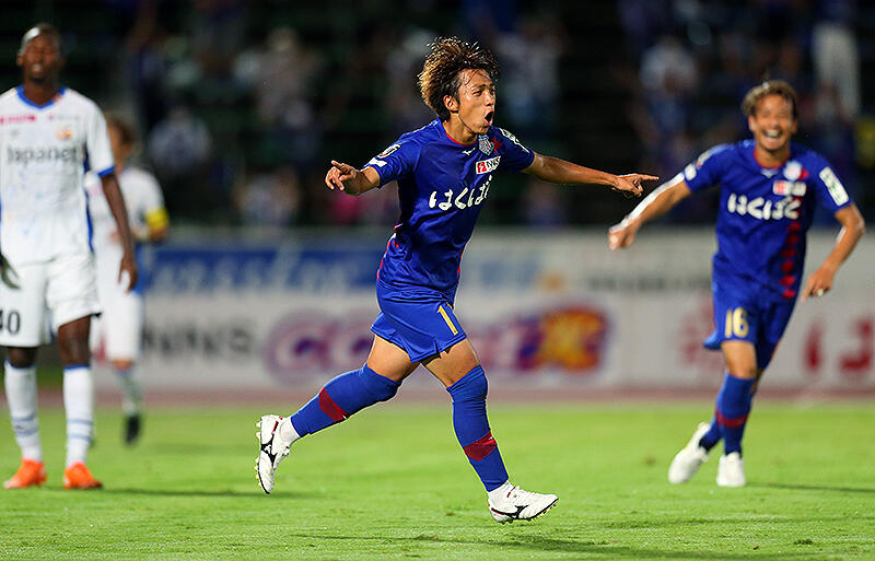 だが、17分には右CKの場面でキッカーの藤田の右足アウトスウィングの絶妙なボールに反応した中村亮がドンピシャのヘディングシュートを流し込み、ホームの甲府が先制に成功する。