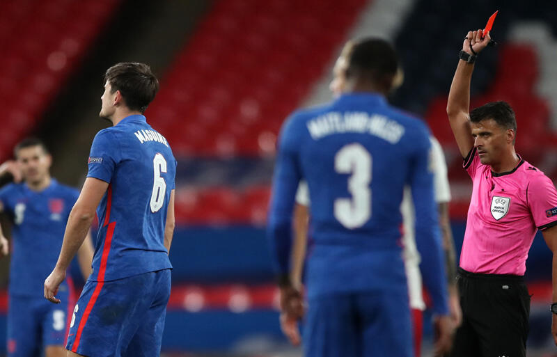 イングランドは、センターバックで出場していたDFハリー・マグワイア(マンチェスター・ユナイテッド)が31分に2枚目のイエローカードを受けて退場処分に。その直後の34分にPKがデンマークに与えられ、破れていた。