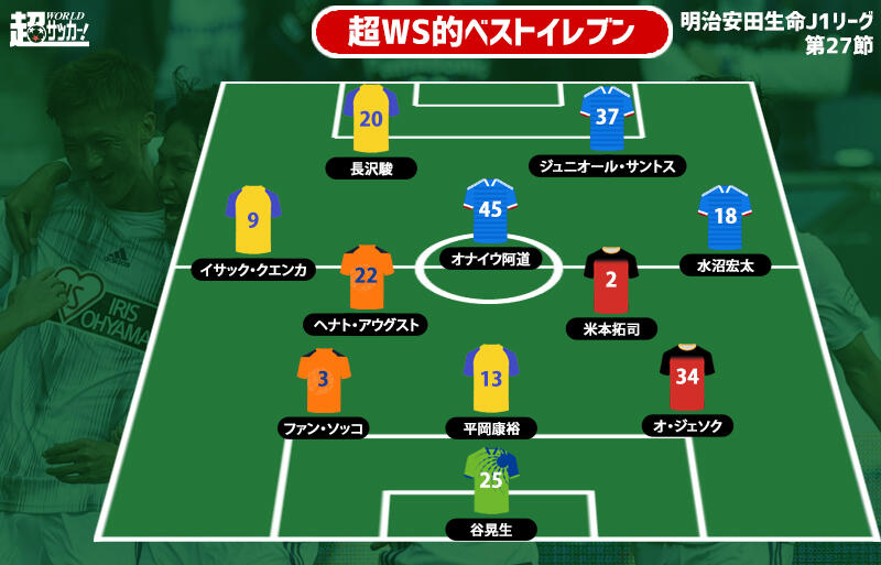 明治安田生命J1リーグ第27節の8試合が14日から15日にかけて開催された。超WS編集部が各試合から印象に残った選手を選りすぐり、ベストイレブンを紹介する。なお、12月9日に予定されている柏レイソルvs大分トリニータは除く。