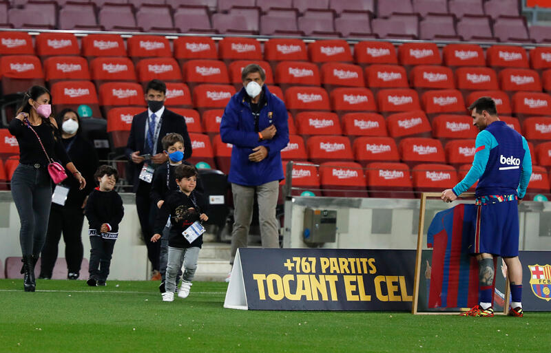 セレモニーでは、メッシがデビューを飾った2003-04シーズンのユニフォームにチームメイトたち全員のサインが入った特別なシャツが贈呈され記念撮影。これには、負傷離脱中の元スペイン代表DFジェラール・ピケや、妻のアントネラさん、長男のチアゴくん、次男のマテオくん、三男のシロくんといった家族も駆けつけた。