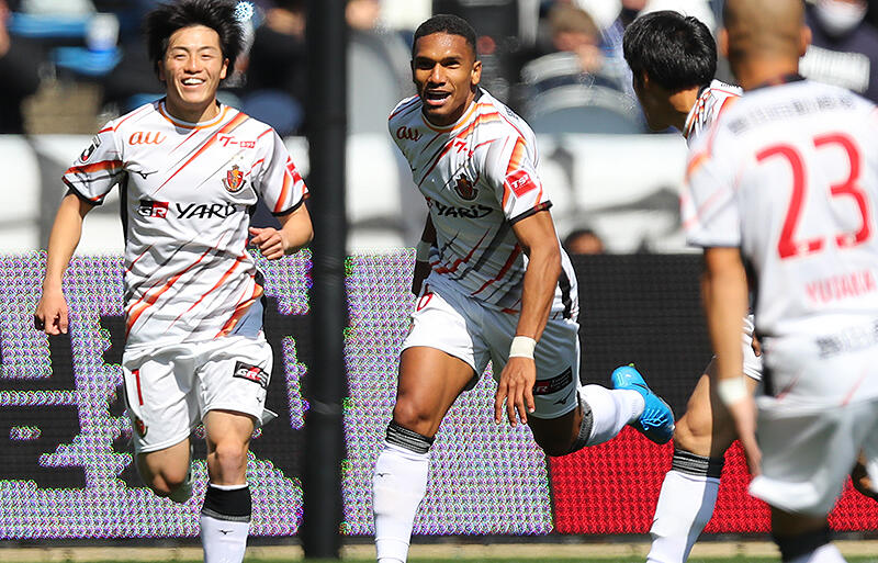 チャンスを逃した名古屋だったが60分、右サイドを突破したマテウスの折り返しをボックス右までオーバーラップした成瀬がシュート。枠の右に逸れたボールをゴールエリア右の山崎が収めると、ラストパスを最後は阿部がゴールに流し込んだ。