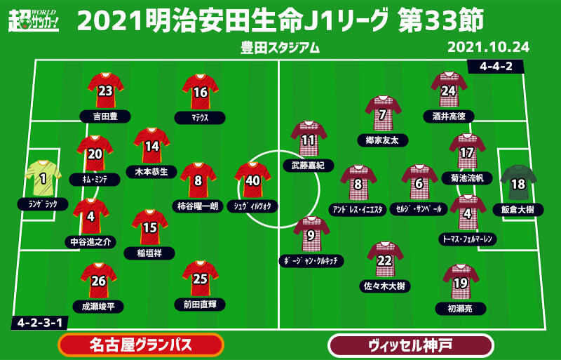 【J1注目プレビュー|第33節:名古屋vs神戸】勝ち点差「3」、熾烈な3位を争う“シックスポインター”