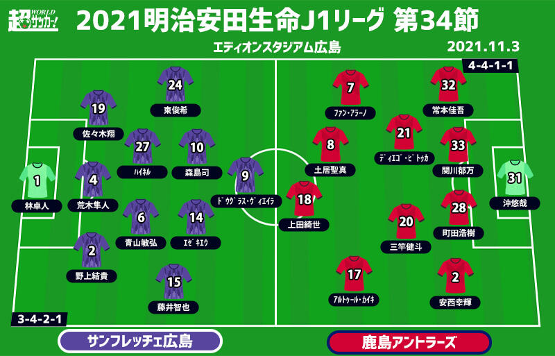 【J1注目プレビュー|第34節:広島vs鹿島】新体制の広島は何を見せる? 鹿島は3位争いで正念場