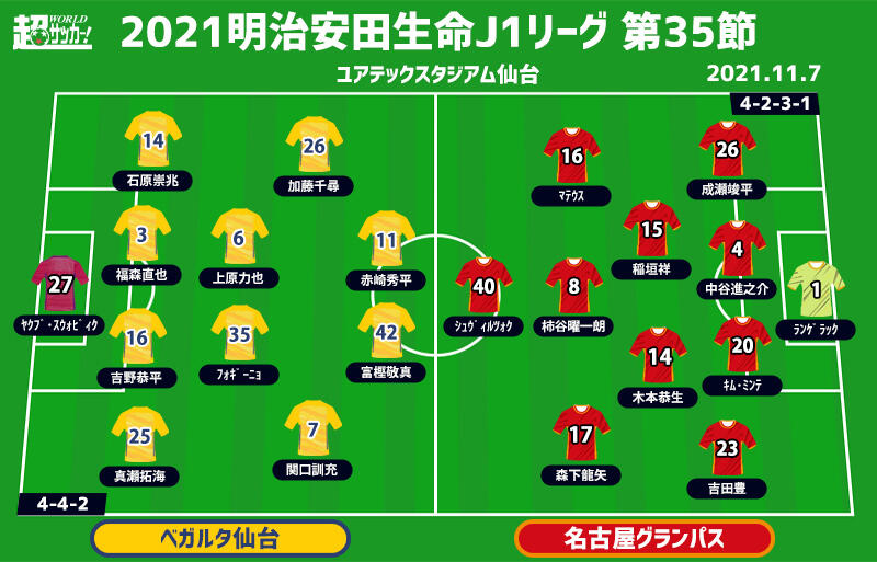 【J1注目プレビュー|第35節:仙台vs名古屋】残留へ正念場の仙台、3位争い名古屋も欲しい勝ち点「3」