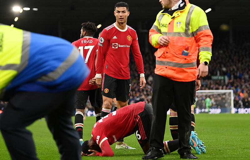 そんな一戦のブラジル代表MFフレッジが勝ち越しゴールを決めた70分、ユナイテッドの選手がリーズ側の右CKフラッグ付近で歓喜の輪ができると、そこにスタンドから物が投げ込まれ、U-21スウェーデン代表FWアンソニー・エランガの頭部にヒットした。