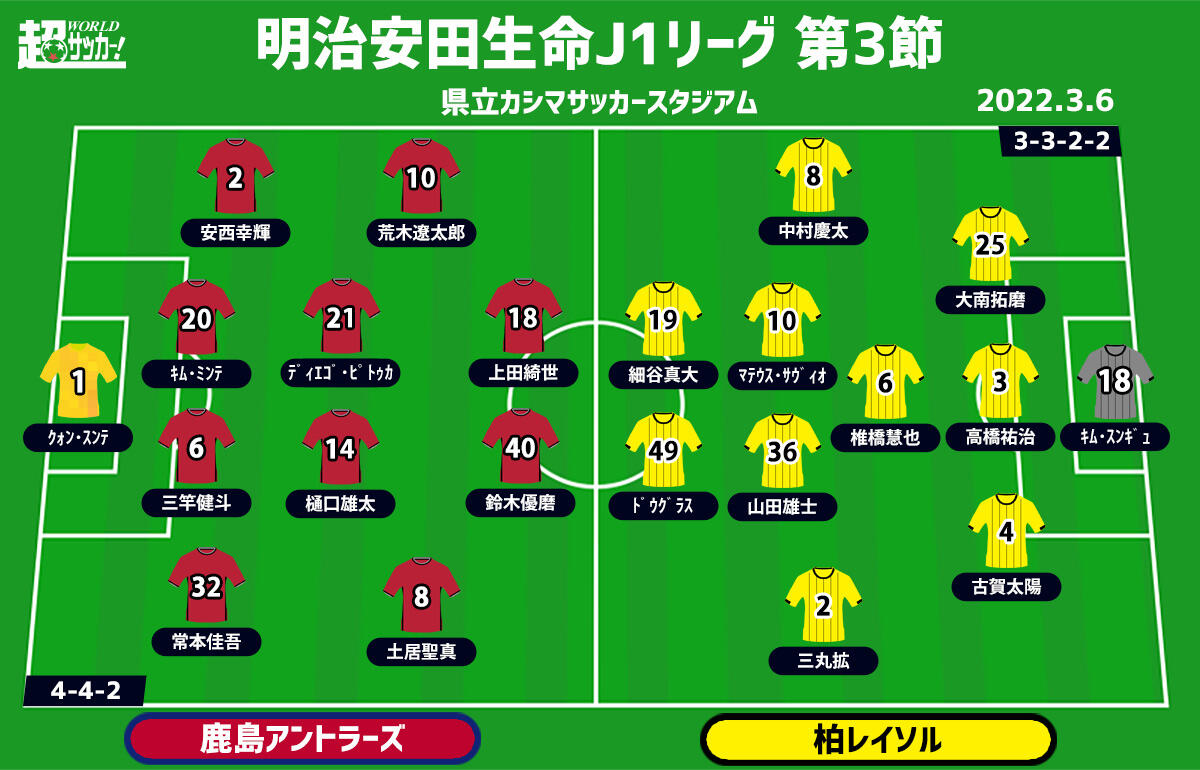 【J1注目プレビュー|第3節:鹿島vs柏】自信を取り戻したい鹿島、柏は唯一の開幕3連勝目指す