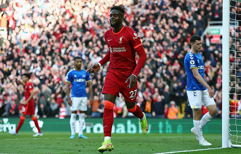 ミッドウィークに行われた第30節延期分のマンチェスター・ユナイテッド戦で4-0の圧勝を飾り、首位マンチェスター・シティとの勝ち点1差キープに成功したリバプール。前日にシティが勝利したことで暫定4ポイント差で迎えた勝ち点3必須のダービーでは先発2人を変更。ヘンダーソンとルイス・ディアスに代えてナビ・ケイタ、ジョタを起用した。