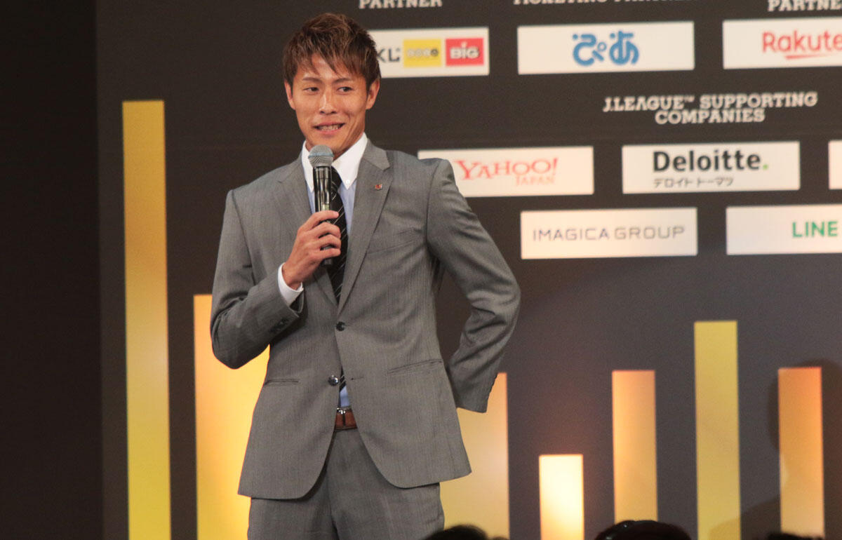 15日、元日本代表MF松井大輔の引退試合『松井大輔引退試合-Le dernier dribble-~STARSEEDS SPECIAL MATCH~』がニッパツ三ツ沢球技場で開催された。 京都パープルサンガ(現:京都サンガF.C.)でプロキャリアをスタートし、フランスを始めとしたヨーロッパのクラブで活躍した松井。2014年にはジュビロ磐田へ移籍してJリーグに復帰し、ポーランドや横浜FC、ベトナム、Y.S.C.C.横浜でもプレーした。 2023シーズン限りで現役を引退し、現在は横浜FCサッカースクールのコーチとして指導者の道を歩むなか、豪華メンバーが集った引退試合を戦った。 試合前にはナオト・インティライミのスペシャルライブが行われ、キックオフ前には元タッキー&翼の今井翼が松井に花束を贈呈。盟友である中村俊輔からのビデオメッセージも届いた。 松井は岩政大樹監督率いるMATSUI FRIENDSの一員として最初はプレー。一方、本田圭佑が1トップに入り、小野伸二や香川真司、遠藤保仁が組み立てる山本昌邦監督のJAPAN DREAMSが序盤は主導権を握る。 しかし4分、高い位置でボールを奪い返したMATSUI FRIENDSは、酒井高徳の右クロスから松井がヘディング。最前線の三浦知良も裏抜けを狙っていく。 さらに福西崇史のミドルもあったMATSUI FRIENDS。9分には太田宏介の左クロスから三浦がシュート。こぼれ球を今日の主役、松井が押し込んで先制した。 14分にはまたもMATSUI FRIENDSにチャンス。橋本英郎のクロスから松井が左足ダイレクトボレーで狙うも、枠の右に外れる。 なかなか最終局面を崩せないJAPAN DREAMSだが、小野のループや大久保嘉人のヘディングで徐々にゴールに接近。しかし、追加点はまたもMATSUI FRIENDS。18分、中山克広が右サイドを持ち上がると、ボックス内で三浦が溜め。最後は松井が右足を振り抜いた。 劣勢のJAPAN DREAMSも21分に反撃。小野の右クロスからファーの大久保が頭で押し込んだ。 本田も積極的にミドルを狙っていくと、JAPAN DREAMSがボックス手前右寄りの位置でFKを獲得。本田と遠藤がボールの前に立つと、シュートを放ったのは本田。クロスバーに直撃し、跳ね返りに反応した小野のシュートも枠の上に飛んだ。 クーリングブレイクを挟むと松井や三浦が下がるなど選手交代。ピッチに登場したパンサー尾形は早速イエローカードをもらう。 33分にはJAPAN DREAMSが同点弾。本田がゴール前に浮き球を送ると、ゴール前フリーで収めたのは小野。ヒールでおしゃれにゴールへ流し込んだ。 追いつかれたMATSUI FRIENDSは柿谷曜一朗から城彰二を走らせるスルーパスも。パンサー尾形もシュートを放っていく。 38分、JAPAN DREAMSの本田に決定機。ゴール前で小野からリターンパスを受け、GKまでかわすが、シュートには持ち込めずゴールラインを割る。 ゴールまであと一歩の本田は、40分についにゴールゲット。JAPAN DREAMS側で再び登場の松井のクロスをゴール前で収め、左足を振り抜いた。 さらに松井のボレーもあったJAPAN DREAMSだが、GKを務めたEXIT りんたろー。が身体を張ったセーブ。しかし44分、カウンターで駆け上がった松井が大久保の右クロスをゴール前で胸トラップ。GKりんたろー。をかわしてハットトリックを達成する。 前半アディショナルタイムにはロングボールから本田が最終ラインの裏へ抜け出し、GKりんたろー。と一対一に。冷静にかわして流し込み、逆転したJAPAN DREAMSの3点リードで前半を終える。 メンバーの入れ替わりもあって後半開始。互いにゴールに迫るもこう着状態が続く。 53分、MATSUI FRIENDSはFリーガーの浅野蓮がGKとの一対一を迎えるが、決めきれず。一方のJAPAN DREAMSは57分、クロスのクリアボールを佐藤寿人が押し込んでさらにリードを広げる。 1分後、今度はMATSUI FRIENDSの矢部浩之が右からの折り返しをヒールで流し込むフィニッシュ。すぐさま1点を返す。 その後も3度決定機を迎えた矢部だが、いずれもシュートは枠の外。疲労も見受けられ、力ないシュートが飛ぶ。 それでも66分には矢部が意地の2点目。最終ラインの裏へ抜け出し、GKとの一対一をループで制した。 クーリングブレイクを挟むと、MATSUI FRIENDSは元プロ野球選手の内川聖一や西岡剛、元ハンドボール選手の土井レミイ杏利も出場。すると75分、右クロスに飛び込んだ土井レミイ杏利がボールを手でキャッチ。すかさずゴールへ投げ込んでネットを揺らしたが、主審はレッドカードを提示する。 その後も次々と選手が入れ替わるなか、78分には松井が右クロスを胸トラップしてからのボレーで4点目。1分後にも右クロスからのダイレクトボレーで松井がゴールを奪う。 直後、カウンターを仕掛けたMATSUI FRIENDSは総合格闘家の皇治が得点。さらに西岡の折り返しを吉田沙保里が押し込み、一気に2点を返す。 85分、今度は松井が右クロスにバイシクルで合わせてこの日5点目。87分にはJAPAN DREAMSが香川のゴールで10点目を記録。松井は乾貴士とのコンビネーションからさらにネットを揺らす。 後半アディショナルタイム直前には、ボックス内で仕掛けた香川に吉田がタックル。香川が吉