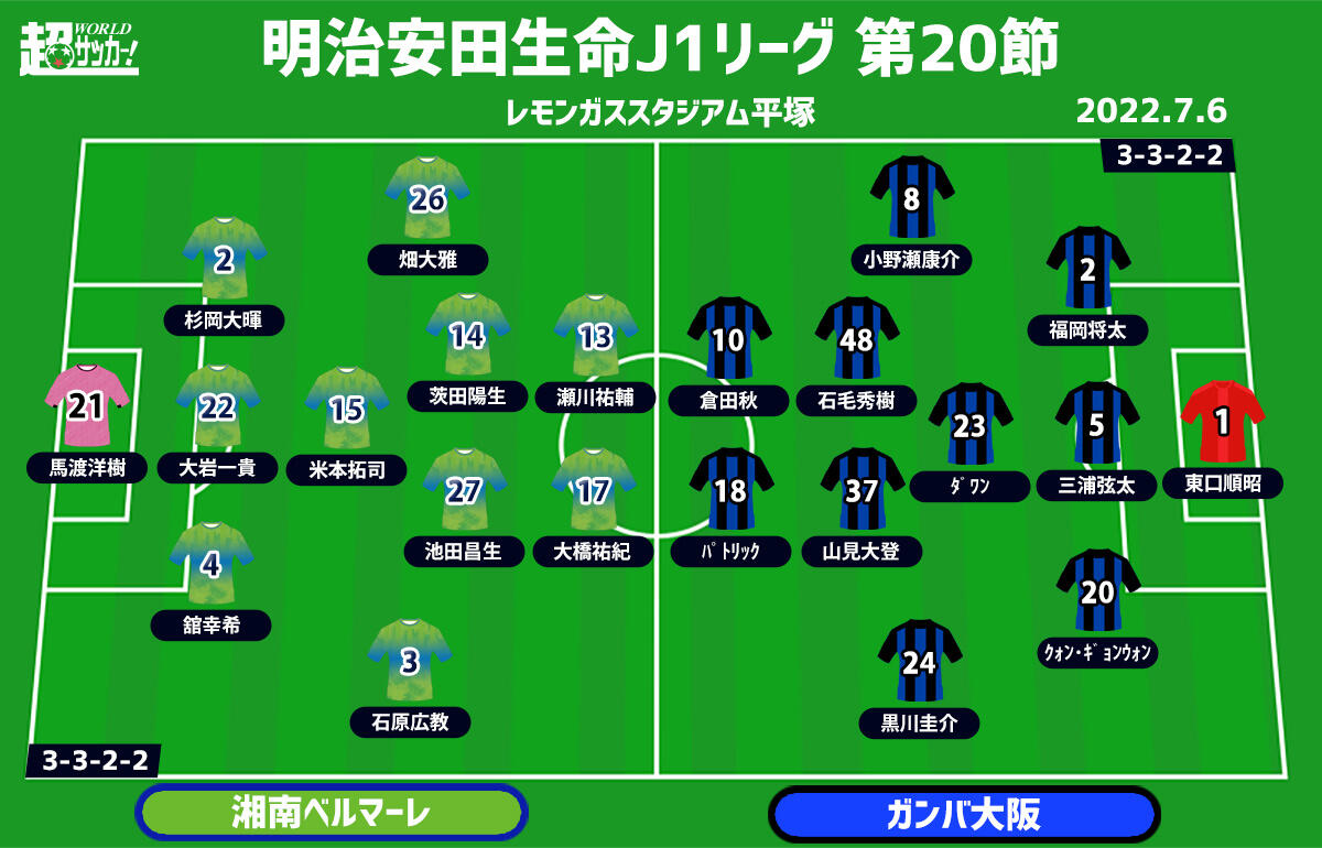 【J1注目プレビュー|第20節:湘南vsG大阪】勝てば共に中位へ、負ければ残留争いど真ん中