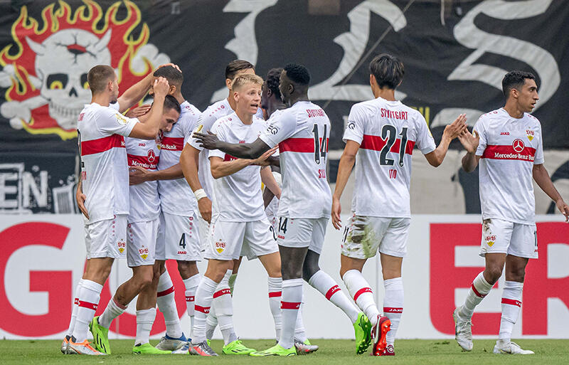 10人となったシュツットガルトだったが、最後まで集中を切らさず1-0で逃げ切り。公式戦初戦を制して勝ち上がりを決めている。