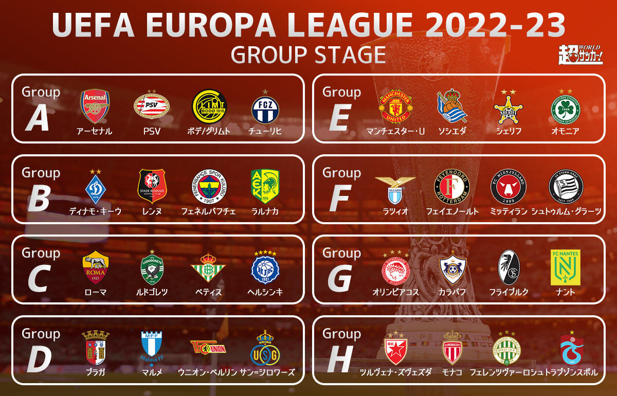 その他では、久保のソシエダはマンチェスター・ユナイテッドと同居。南野のモナコはツルヴェナ・ズヴェズダやトラブゾンスポルなど曲者のグループに入った。また、田中は昨季のヨーロッパ・カンファレンスリーグ(ECL)王者のローマやコパ・デル・レイ王者のベティスと同居している。