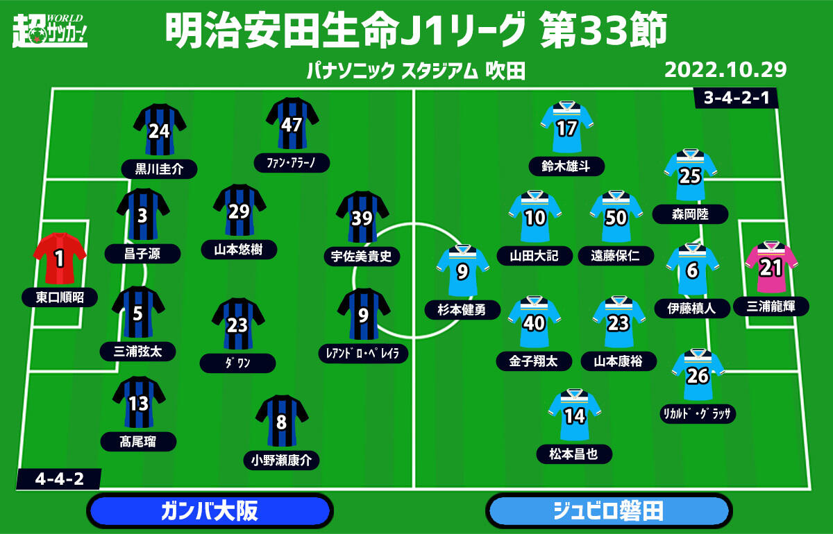 【J1注目プレビュー|第33節:G大阪vs磐田】J1に生き残るのはどっちだ!? 降格圏直接対決