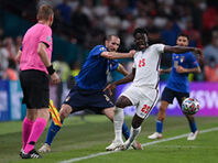 11日に行われたユーロ2020決勝でイングランド代表に勝利し、53年ぶり2度目となる欧州制覇を成し遂げたイタリア代表の主将を務めたDFジョルジョ・キエッリーニ。大会を通じてDFレオナルド・ボヌッチとともにイタリアの最終ラインを統率したが、イングランド戦で見せたやや“ダーティ”なプレーには批判も集まっている。 1-1で迎えた後半アディショナルタイム6分、イングランドのロングボールに対しキエッリーニが対応を誤り、イングランド代表FWブカヨ・サカに右サイドを突破されかける。 すると、百戦錬磨のDFリーダーはサカのユニフォームの後ろ襟を掴み、そのまま引き倒してプレーを止めた。キエッリーニにはイエローカードが提示されると、サカはキエッリーニが差し出した手を無視していた。 延長戦に差し掛かろうという中、絶対に止めないといけない場面ではあったものの、キエッリーニのプレーには「汚いプレーだ」「ただの暴行だ」「文字通りサカの息の根を止めた」などキエッリーニを批判する声も多く集まった。 このシーンについては批判もあるものの、間違いなくイタリアの守備を支えたキエッリーニは来月で37歳。ユーロ終了後の代表引退を示唆していたが、どのような決断を下すだろうか。 <span class="paragraph-title">【動画】キエッリーニがサカを引き倒す</span> <span data-other-div="movie"></span> <blockquote class="twitter-tweet"><p lang="en" dir="ltr">Just plain assault on Saka<a href="https://twitter.com/hashtag/Euro2020Final?src=hash&ref_src=twsrc%5Etfw">#Euro2020Final</a> <a href="https://twitter.com/hashtag/englandvitaly?src=hash&ref_src=twsrc%5Etfw">#englandvitaly</a> <a href="https://t.co/VxiRkqFZrw">pic.twitter.com/VxiRkqFZrw</a></p>— Tim Gatt (@TimGatt) <a href="https://twitter.com/TimGatt/status/1414328562828595205?ref_src=twsrc%5Etfw">July 11, 2021</a></blockquote> <script async src="https://platform.twitter.com/widgets.js" charset="utf-8"></script> 2021.07.12 19:45 Mon3