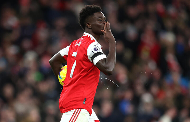 2019-20シーズンの本格的なプロデビューから、今季で4年目となるサカ。昨季のプレミアリーグで全38試合に出場し11ゴール7アシストの数字で頭角を現すと、今季もここまで15試合で5ゴール6アシストと、昨季を上回る勢いでゴールを演出。カタール・ワールドカップのイングランド代表メンバーにも選ばれ、3ゴール1アシストを記録した。