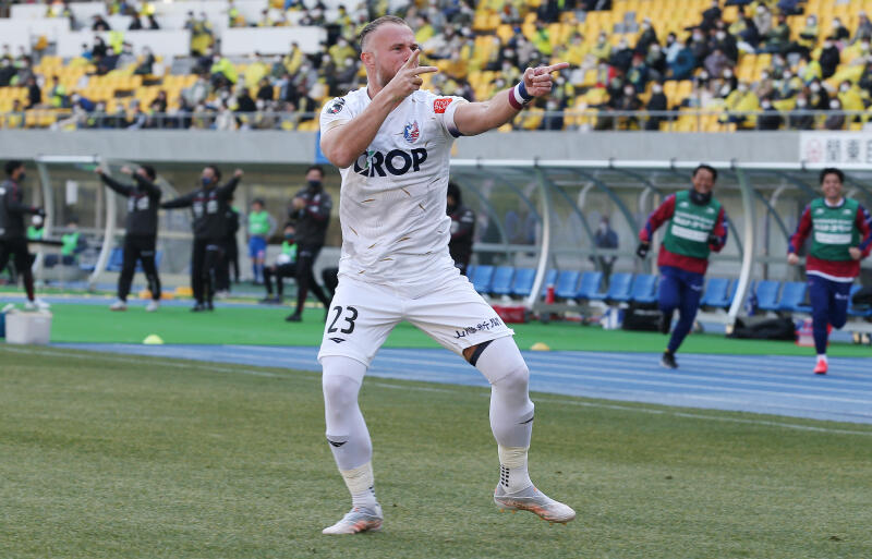 昨シーズンもFKからゴールを決めていたヨルディ・バイス。今シーズンも岡山の大きな武器となりそうだ。