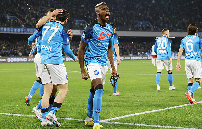 デルビーらしい見応えのあるバトルが続く中、パルテノペイが誇るホットラインが開通。この試合2度目のチャンスを先制点に結びつける。17分、左サイドでの繋ぎから左のハーフスペースに侵入したマリオ・ルイがDFを引き付けてから外側でフリーのクワラツヘリアに繋ぐ。そのままドリブルでボックス内に持ち込んだジョージア代表FWが柔らかなクロスを上げると、ファーで胸トラップしたオシムヘンが腿を使ったボールコントロールから強烈な右足のボレーシュートを叩き込み、決勝点を挙げた前回対戦に続くファインゴールとした。