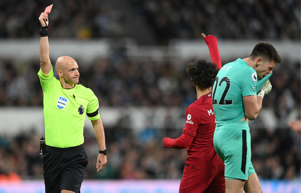 ニューカッスルのイングランド代表GKニック・ポープの退場シーンに注目が集まっている。ここまで全試合フル出場を果たし、マグパイズの4位躍進を支える1人のポープ。18日に開催されたプレミアリーグ第24節、ホームでのリバプール戦にも先発出場したが、10分、17分と連続失点を喫すると、22分には一発退場処分に。ペナルティエリア外でのハンドを冒してしまった。