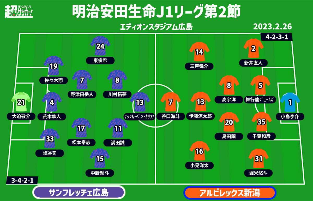 【J1注目プレビュー|第2節:広島vs新潟】広島はネットを揺らせるか、5シーズンぶりに凱旋の千葉和彦が立ちはだかる