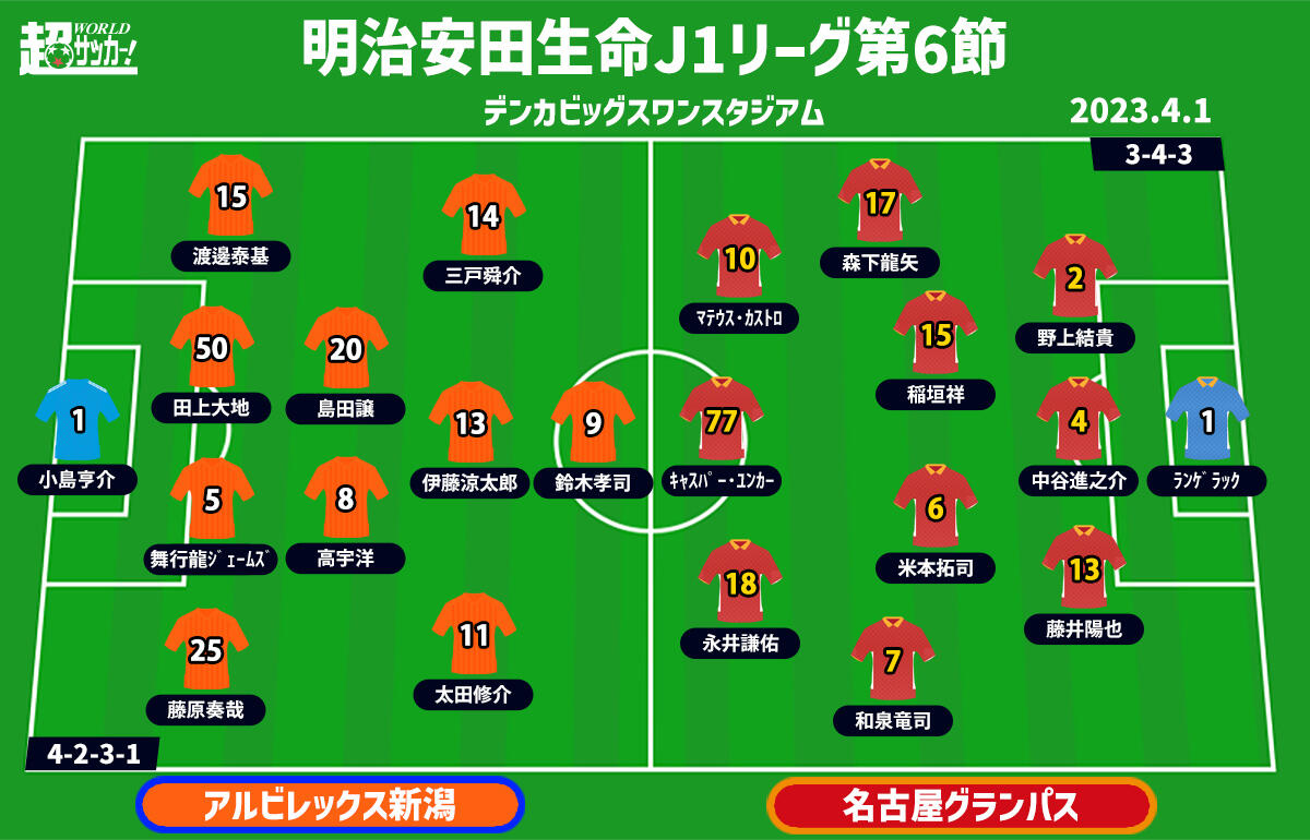 【J1注目プレビュー|第6節:新潟vs名古屋】5試合1失点、堅牢な名古屋の守備網を新潟のパスワークがどう崩す?