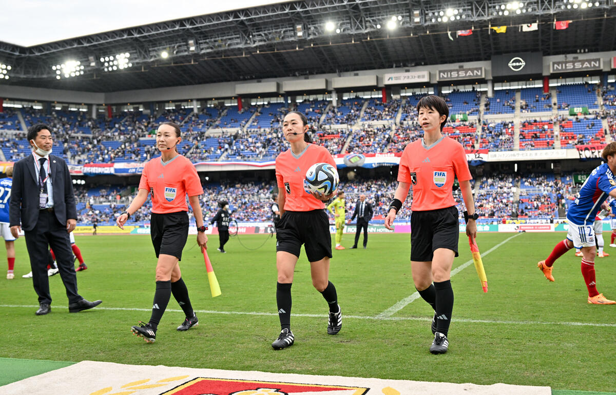 29日、明治安田生命J1リーグ第10節の横浜F・マリノスvs名古屋グランパスの一戦。首位を追いかける両チームのビッグマッチを担当したのは、山下良美主審、坊薗真琴副審、手代木直美副審の3名だった。