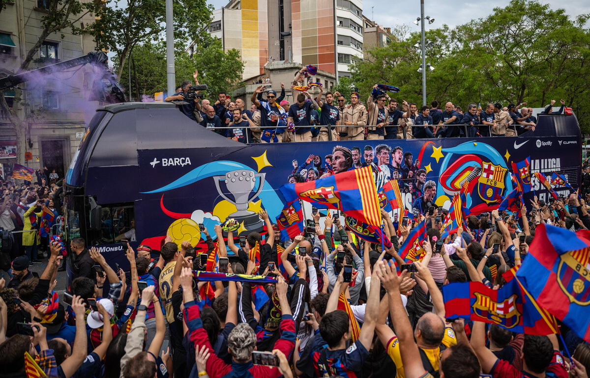 バルセロナの選手たちが4シーズンぶりのラ・リーガ制覇を喜んでいる。14日に行われたラ・リーガ第34節のエスパニョール戦に勝利し、4シーズンぶり27度目のラ・リーガ優勝を果たしたバルセロナ。15日にはバルセロナで優勝セレモニーも行われた。