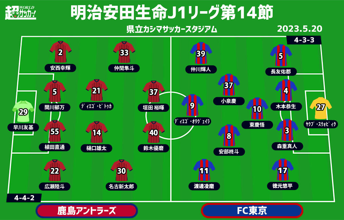 【J1注目プレビュー|第14節:鹿島vsFC東京】国立で共に勝利、5連続完封&連勝の鹿島が東京を迎え撃つ