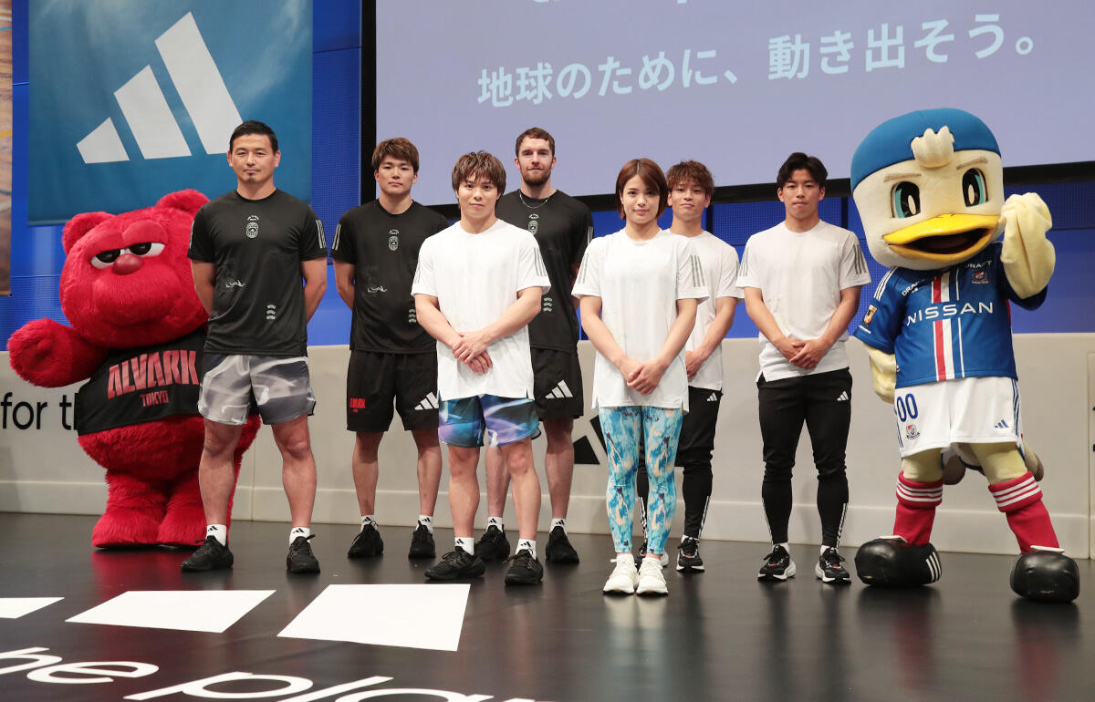 都内で行われた『adidas MOVE FOR THE PLANET キックオフチャレンジ』には、元ラグビー日本代表選手で現在は静岡ブルーレヴズCROの五郎丸歩氏や、柔道家の阿部一二三、阿部詩兄妹、Bリーグのアルバルク東京からザック・バランスキー、安藤周人、そして横浜F・マリノスのDF永戸勝也、MF吉尾海夏が参加した。