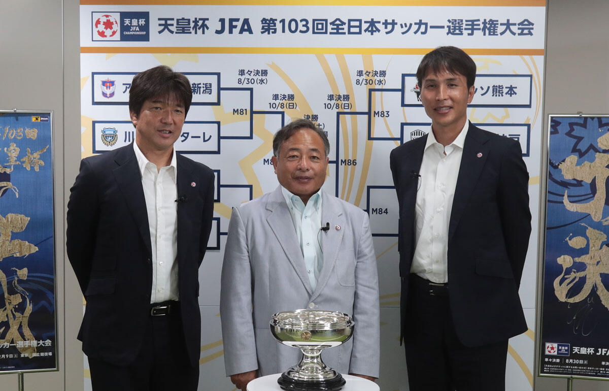 組み合わせ抽選会には、現在日本代表のコーチを務め、現役時代にはジュビロ磐田で天皇杯優勝を経験している名波浩氏と前田遼一氏がドロワーとして参加。抽選会後に取材に応じた。