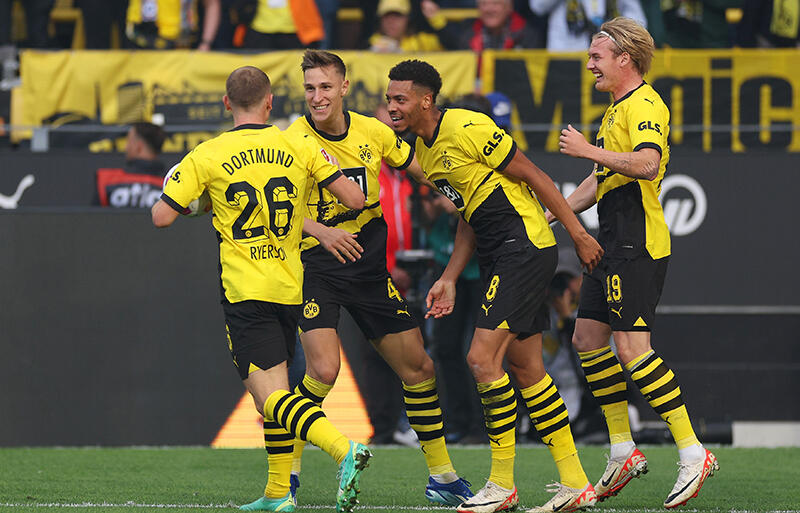 それでも1分後、ドルトムントが先制する。左CKからフュルクルクのヘディングシュートはGKレノウに止められるも、ルーズボールを自ら押し込んだ。