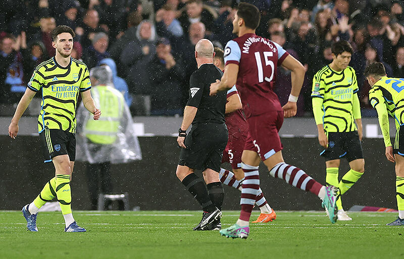 以降もアーセナルペースで試合が進んでいくが、先にゴールを奪ったのはウェストハム。16分、右CKの場面でキッカーのボーウェンが左足インスウィングでゴールへ向かうボールを蹴ると、ニアでクリアを試みたDFホワイトの頭に当たったボールがそのままゴールネットに突き刺さった。