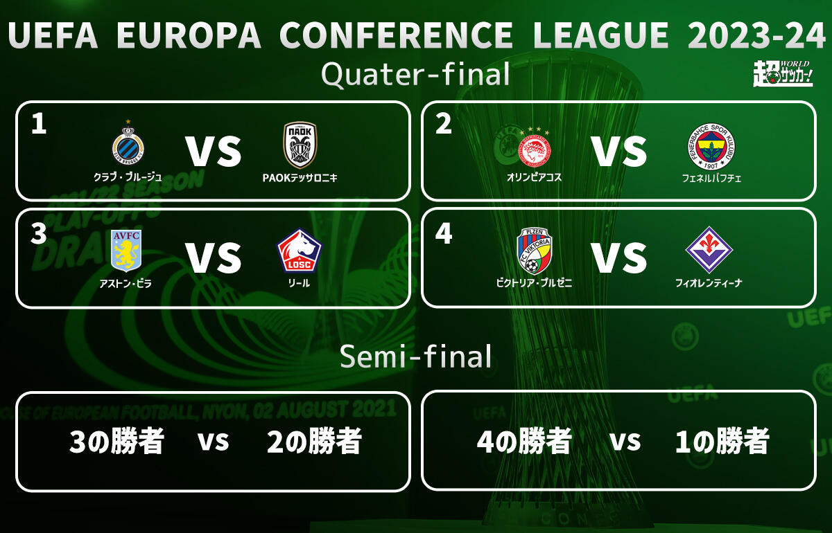 本間が所属するクラブ・ブルージュはPAOKテッサロニキと対戦。2年連続ファイナル行きを目指すフィオレンティーナは、ビクトリア・プルゼニと対戦する。