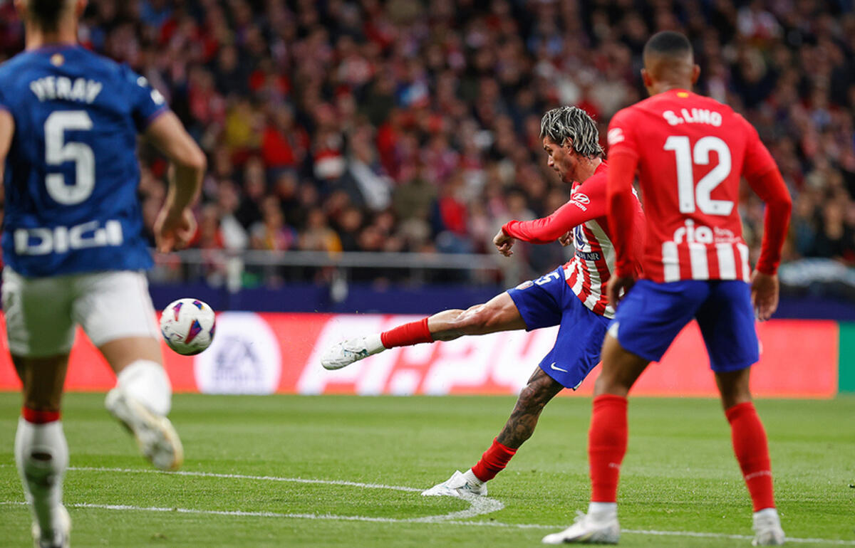 もちろん、それはアラベスに負けた後、5位のアスレティックとの勝ち点差がたったの3になってしまったからですが、シメオネ監督のチームの立ち上がりはかなり不安定。初っ端からイニャキ・ウィリアムスにフリーでvolea(ボレア/ボレーシュート)を撃たれるなど、ドッキリさせられたんですが、15分には早速、メトロポリターノマジックが発動します。ええ、ジョレンテが上げたクロスをレクエがヘッドでクリアしたところ、それが丁度、エリア前にいたデ・パウルの前に落ち、そのシュートがガラレタに当たって、GKウナイ・シモンを破ってくれるとは、まるで冗談のようじゃないですか。