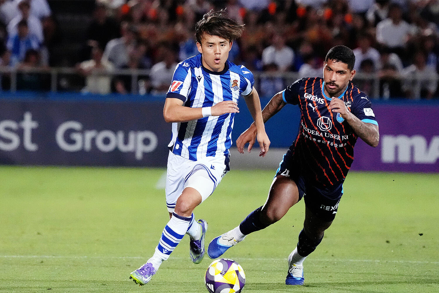 ソシエダは25日、ジャパンツアーの第2戦でJ1の横浜FCと対戦。右ウイングで先発出場した久保は、序盤から攻撃を牽引。7分には右サイドからスルーパスを通し、21分には右足のシュートを放つ積極性を見せた。