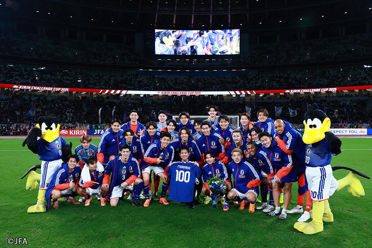 日本代表は18日、キリンチャレンジカップ2025でボリビア代表と対戦し、3-0で勝利した。日本代表通算100試合指揮を迎えた森保一監督のメモリアルマッチを勝利で飾っている。