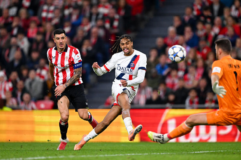 後半立ち上がりの48分にも、PSGがアスレティック・ビルバオを脅かす。N・メンデスが自陣左サイドから前線にロングパスを配球。右サイドに流れたボールにクヴァラツヘリアが抜け出すと、ボックス右脇からダイレクトでゴール前に折り返す。相手の足に当たって軌道が変わると、遅れて走り込んできたセニー・マユルがダイレクトでシュート。しかし、またもGKウナイ・シモンにストップされた。