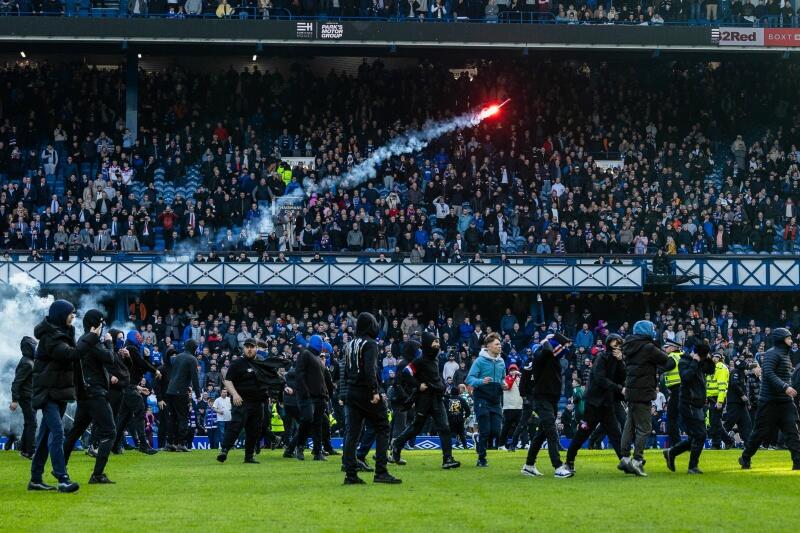 セルティック対レンジャーズは大荒れに…試合後に大量のファンがピッチ乱入で逮捕者も