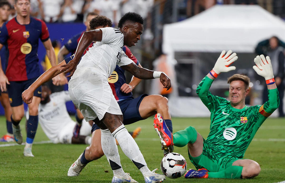 いえまあ、これで夏のアメリカツアークラシコでは4連敗とはいえ、「バルサに負けるのはプレシーズンでも嫌だけど、cuando cuenta es durante la temporada/クアンドー・クエンテ・エス・ドゥランテ・ラ・テンポラーダ(大事なのはシーズン中だからね)」(クルトワ)というのは事実ですからね。アンチェロッティ監督も「慌てることはない。ウチは多くの選手がまだいないし、esto es para coger la forma/エスト・エス・パラ・コヘール・ラ・フォルマ(これはフォームを整えるための試合だから)」と落ち着いたもんでしたが、せめて水曜午前1時(日本時間午前8時)からのチェルシー戦ぐらいは勝っておかないと。エムバペ、ベリンガム、カルバハル、カマビンガ、チュアメニ、メンディが戻るのは帰国後になりますし、実質、今季初公式戦となるUEFAスーパーカップ、アタラタンタ戦は現メンバーで戦うとなれば、勝ち癖をつけるのも必要なんじゃないでしょうか。