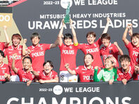 受け継がれる伝統芸がついに完成の時を迎えたようだ。三菱重工浦和レッズレディースのMF栗島朱里が伝えている。 浦和レディースは3日、Yogibo WEリーグ第21節で大宮アルディージャVENTUSと浦和駒場スタジアムで対戦。4-0で勝利を収めた。 引き分け以上で優勝が決まるという状況下、序盤から攻勢を強めた浦和は立ち上がりからシュートシーンを量産し、24分に猶本光の絶妙なループシュートで先制点を挙げた。 前半終了間際には島田芽依が追加点を奪うと、後半には相手のミスに乗じて清家貴子が2ゴールをマーク。守っても無失点で90分を終え、文句なしの勝利でWEリーグ初優勝を達成した。 優勝セレモニーでのトロフィーリフト時には、クラブに受け継がれているあの伝統芸も披露された。 森脇良太(愛媛FC)が浦和レッズ所属時代に披露した、トロフィーを持ち上げた際に後方の選手たちがノーリアクションになるというお約束。レディースにも受け継がれており、2020年のなでしこリーグ優勝時や、今季のWEリーグカップ制覇時にも披露されていた。なお、トロフィーリフトは高橋はなが担当している。 ただ、これまではイマイチ浸透し切っていなかったようで、笑顔のままの選手がいた。栗島は自身のツイッターでこう綴っている。 「ねえみんな、これやる時うしろの人たち笑っちゃいけないんだよ。サッカーの練習と共に、真顔の練習頑張りましょう!」(2020年11月なでしこリーグ優勝時) 「どうも毎回揃わずにすみません。どうにか頑張ろうと声かけはしているんですが、浸透しきれずです。でも徐々に真顔の数は増えてきているので、ポジティブに捉えています。どこのカメラから撮られてもクオリティの高いものを仕上げていけるよう精進して参ります」(2022年10月WEリーグカップ優勝時) だが、トレーニングの成果?もあってか、今回は満足のいく仕上がりとなったようだ。栗島は歓喜のコメントとともに、至高の瞬間を投稿した。 「みなさん、お待たせしました。ついに、ついに、ついにこの瞬間がやって来ました」 「この瞬間を夢見て、今シーズン頑張ってきたと言っても過言ではありません」 「それぞれのこだわり抜いたこの真顔」 「どんな時も同じ方向を向き、同じ絵を描き、チーム全員で闘ってきたシーズンがこの写真1枚に集約され表現されていると思います。レッズレディース最高」 安藤梢も猶本も渾身の真顔。とはいえ、実際は正木裕史ヘッドコーチの顔がほころんでおり、「ねえ、本当に反省して。笑」とSNSで栗島に指摘をされていた。 栗島自身にとっても今季は復活を果たした1年だった。開幕戦で右ヒザ前十字じん帯損傷の大ケガから1年ぶりに復帰すると、ここまで先発8試合を含む全19試合に出場。ユーティリティ性を発揮し、サイドバックやボランチとしてチームを支え続けただけでなく、このようなポジティブな空気感でもチームのWEリーグ初制覇に大きく貢献した。 <span class="paragraph-title">【写真】今回は完璧?! 写真で振り返る浦和レディースによる"森脇芸"</span> <span data-other-div="movie"></span> <blockquote class="instagram-media" data-instgrm-permalink="https://www.instagram.com/p/CtDIiUvPfRJ/?utm_source=ig_embed&utm_campaign=loading" data-instgrm-version="14" style=" background:#FFF; border:0; border-radius:3px; box-shadow:0 0 1px 0 rgba(0,0,0,0.5),0 1px 10px 0 rgba(0,0,0,0.15); margin: 1px; max-width:540px; min-width:326px; padding:0; width:99.375%; width:-webkit-calc(100% - 2px); width:calc(100% - 2px);"><div style="padding:16px;"> <a href="https://www.instagram.com/p/CtDIiUvPfRJ/?utm_source=ig_embed&utm_campaign=loading" style=" background:#FFFFFF; line-height:0; padding:0 0; text-align:center; text-decoration:none; width:100%;" target="_blank"> <div style=" display: flex; flex-direction: row; align-items: center;"> <div style="background-color: #F4F4F4; border-radius: 50%; flex-grow: 0; height: 40px; margin-right: 14px; width: 40px;"></div> <div style="display: flex; flex-direction: column; flex-grow: 1; justify-content: center;"> <div style=" background-color: #F4F4F4; border-radius: 4px; flex-grow: 0; height: 14px; margin-bottom: 6px; width: 100px;"></div> <div style=" background-color: #F4F4F4; border-radius: 4px; flex-grow: 0; height: 14px; width: 60px;"></div></div></div><div style="padding: 19% 0;"></div> <div style="display:block; height:50px; margin:0 auto 12px; width:50px;"><svg width="50px" height="50px" viewBox="0 0 60 60" version="1.1" xmlns="https://www.w3.org/2000/svg" xmlns:xlink="https://www.w3.org/1999/xlink"><g stroke="none" stroke-width="1" fill="none" fill-rule="evenodd"><g transform="translate(-511.000000, -20.000000)" fill="#000000"><g><path d="M556.869,30.41 C554.814,30.41 553.148,32.076 553.148,34.131 C553.148,36.186 554.814,37.852 556.869,37.852 C558.924,37.852 560.59,36.186 560.59,34.131 C560.59,32.076 558.924,30.41 556.869,30.41 M541,60.657 C535.114,60.657 530.342,55.887 530.342,50 C530.342,44.114 535.114,39.342 541,39.342 C546.887,39.342 551.658,44.114 551.658,50 C551.658,55.887 546.887,60.657 541,60.657 M541,33.886 C532.1,33.886 524.886,41.1 524.886,50 C524.886,58.899 532.1,66.113 541,66.113 C549.9,66.113 557.115,58.899 557.115,50 C557.115,41.1 549.9,33.886 541,33.886 M565.378,62.101 C565.244,65.022 564.756,66.606 564.346,67.663 C563.803,69.06 563.154,70.057 562.106,71.106 C561.058,72.155 560.06,72.803 558.662,73.347 C557.607,73.7