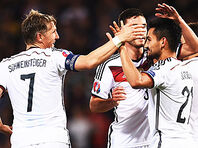 ▽先月行われたW杯予選初戦のノルウェー代表戦を3-0で快勝したドイツは、J・ボアテングが復帰した一方、ゴメスが負傷離脱したことでゲッツェのゼロトップシステムを引き続き採用した。