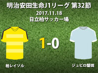 ▽明治安田生命J1リーグ第32節の柏レイソルvsジュビロ磐田が18日に日立柏サッカー場で行われ、1-0で柏が勝利した。 ▽ACL出場権獲得を狙う4位の柏(勝ち点55)と6位の磐田(勝ち点54)が激突した。ホームの柏は、2-2で引き分けた前節の川崎フロンターレ戦から中谷、栗澤、ディエゴ・オリヴェイラに代えて鎌田、大 2017.11.18 16:06 Sat