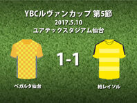 ▽10日、JリーグYBCルヴァンカップ グループA第5節のベガルタ仙台vs柏レイソルがユアテックスタジアム仙台で行われ、1-1のドローに終わった。 ▽4試合を終えて3勝1敗のグループ首位に立つ仙台と、3試合を終えて1勝1分け1敗の5位につける柏の一戦。柏のハモン・ロペスは古巣との初対戦となった。 ▽試合はア 2017.05.10 21:36 Wed