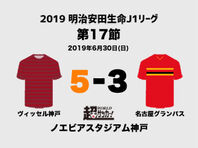 明治安田生命J1リーグ第17節のヴィッセル神戸vs名古屋グランパスが30日にノエビアスタジアム神戸で行われ、5-3で神戸が勝利した。