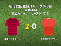 ▽明治安田生命J1リーグ第8節の鹿島アントラーズvs名古屋グランパスが14日に県立カシマサッカースタジアムで行われ、2-0で鹿島が勝利した。 ▽ここまで2勝2分け3敗で13位に位置する鹿島(勝ち点8)と、2勝1分け4敗で16位に位置する名古屋(勝ち点7)が激突した。前節のFC東京戦を1-2で敗れて3試合未勝利とな 2018.04.14 16:05 Sat
