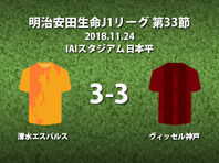 ▽明治安田生命J1リーグ第33節の清水エスパルスvsヴィッセル神戸が24日にIAIスタジアム日本平で行われ、3-3のドローに終わった。