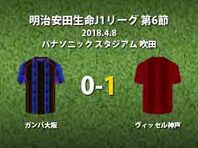 ▽8日にパナソニック スタジアム 吹田で行われた明治安田生命J1リーグ第6節のガンバ大阪vsヴィッセル神戸は、アウェイの神戸が1-0で勝利した。