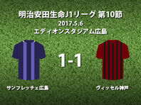 ▽明治安田生命J1リーグ第10節、サンフレッチェ広島vsヴィッセル神戸が6日にエディオンスタジアム広島で行われ、1-1のドローに終わった。